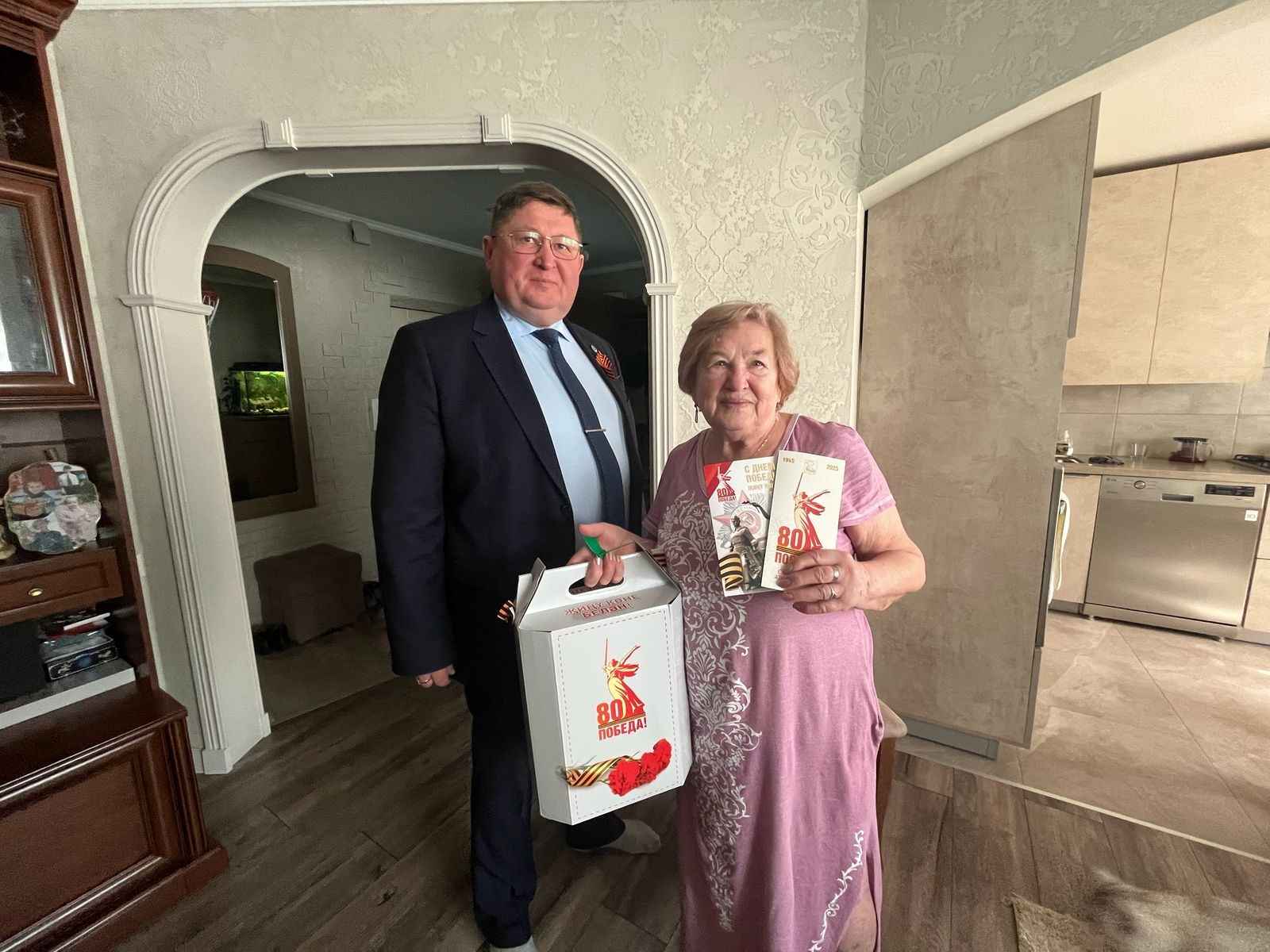 14 участников и 128 тружеников тыла и вдов участников Великой Отечественной войны  Автозаводского района получают подарки и поздравления от имени Раиса Республики Татарстан Рустама Минниханова и мэра города Наиля Магдеева.