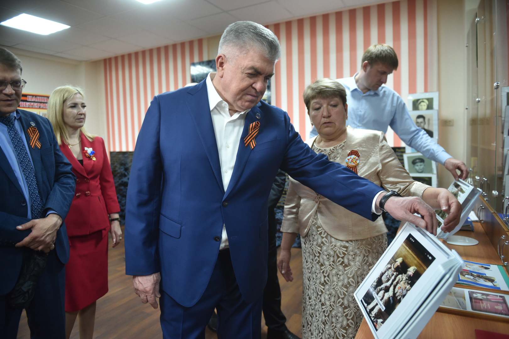 В школьном музее волонтеры проводили мастер-классы по изготовлению георгиевской ленточки и «Урок мужества» с воспитанниками детских садов. В актовом зале же ученикам показывали фильм о Великой Отечественной войне.
