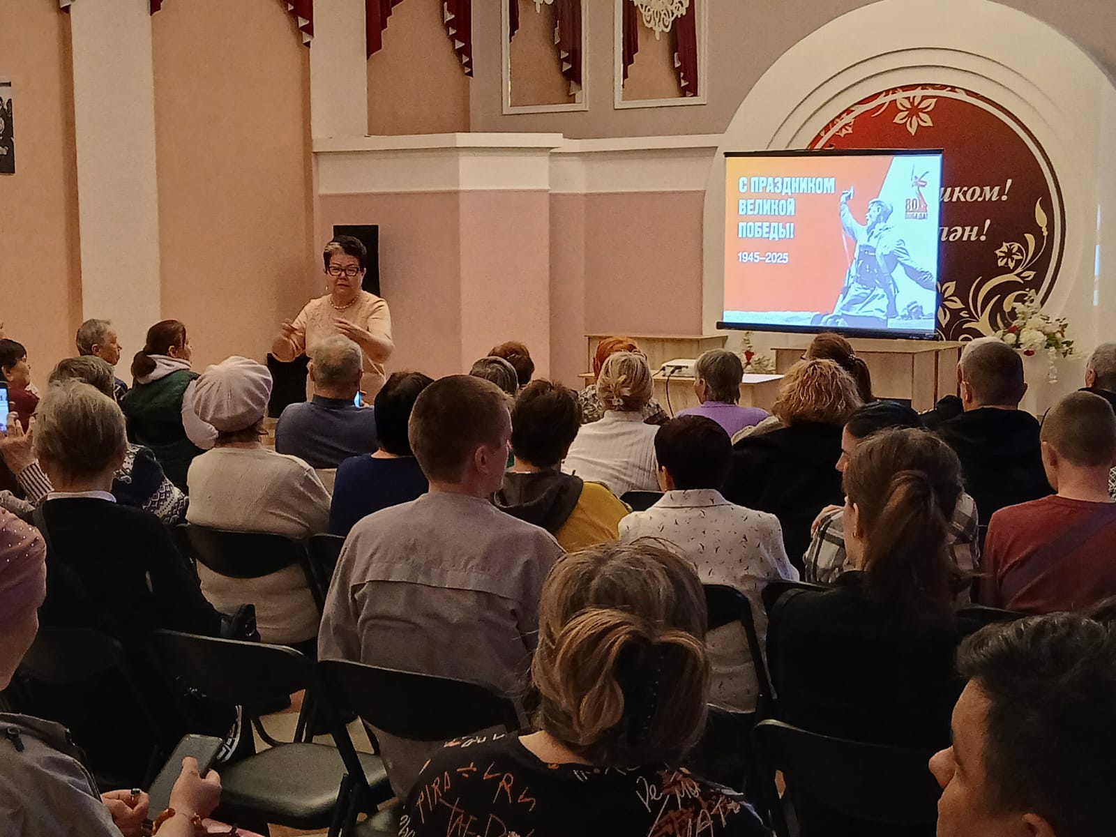 Цель мероприятия – воспитания чувства патриотизма, гордости за свою страну, за доблестные подвиги советских солдат в годы войны. Гульзада Рзаева рассказала присутствующим о тяготах военных лет и как важно сохранить незыблемую память об этом тяжёлом времени и передать её новым поколениям.