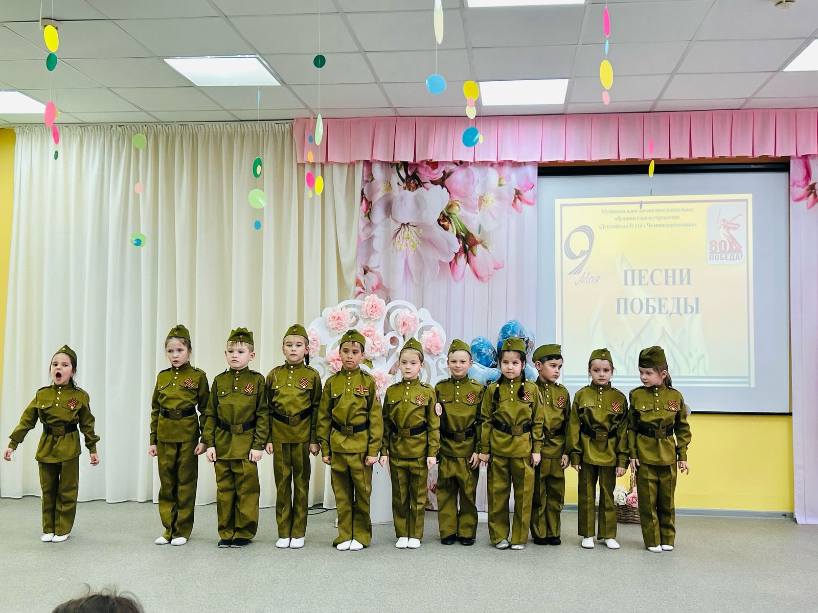 В детском саду №114 «Челнинская мозаика» прошел яркий и эмоциональный конкурс военно-патриотической песни «Песни Победы». Мероприятие было приурочено к знаменательной дате — 80-летию Победы в Великой Отечественной войне.