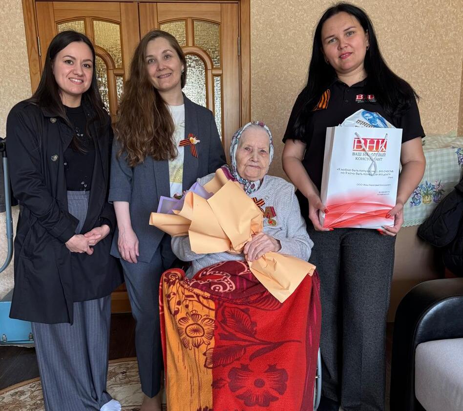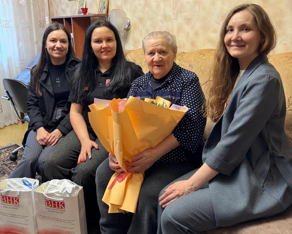 Совместно компанией «Ваш налоговый консультант» организовали вручение продуктовых наборов и букетов цветов четырем подопечным центра: труженикам тыла Марии Ивановне и Гульзяугар Шаеховне, а также пожилой супружеской паре Нине Васильевне и Михаилу Васильевичу, не имеющим близких родственников в городе. Поздравления ветеранам были переданы от имени организации и сотрудников центра.