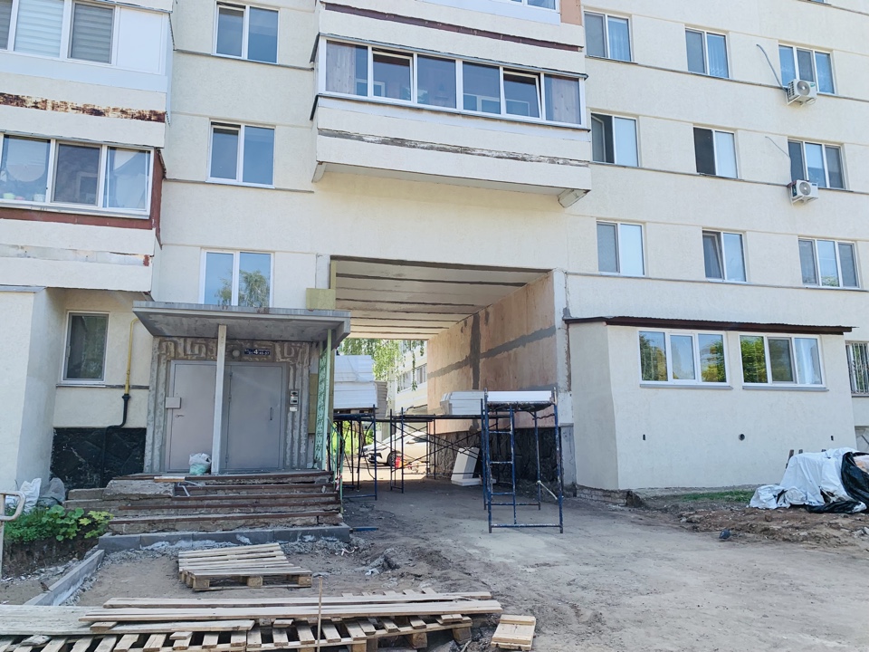 Уже начались восстановительные работы фасада жилого дома 51/01 и модернизации системы водоотведения здания 51/04.