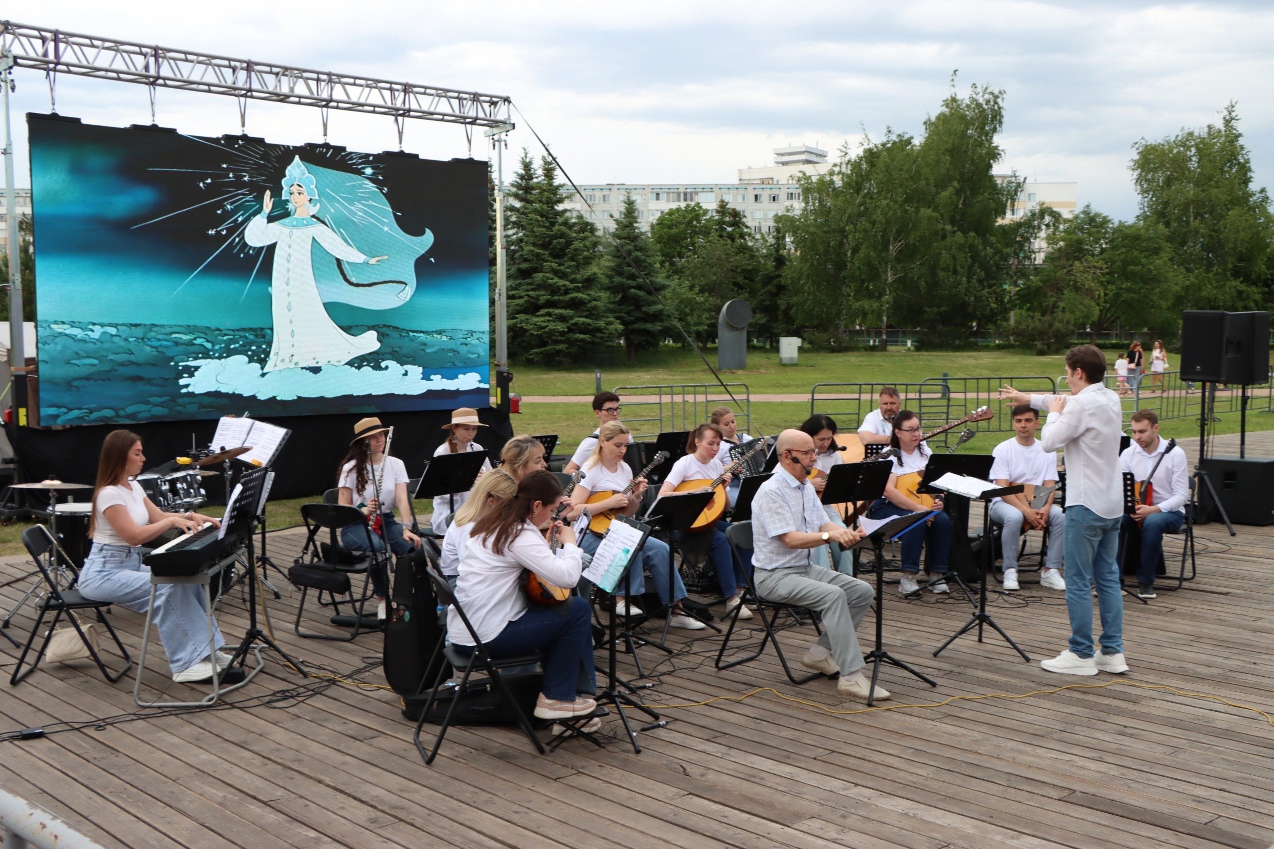 На площади Азатлык состоялось музыкальное представление. Оркестр народных инструментов под руководством Ирека Файзрахманова и заслуженный артист Башкортостана Нурислам Яхин представили музыкальную постановку «Сказка о царе Салтане».