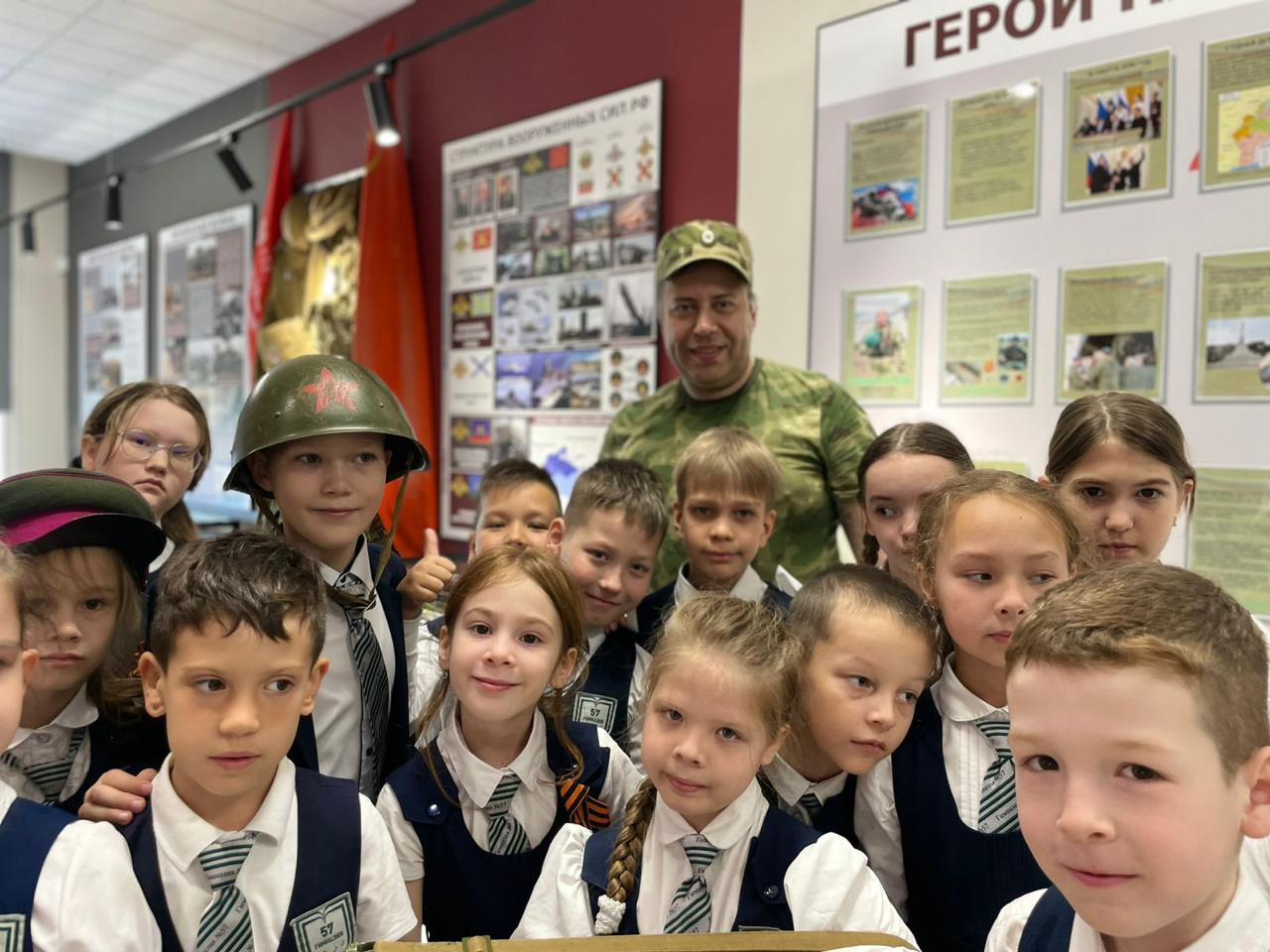 Офицер и военный пенсионер Евгений Михайлов сопровождал уроки о Знамени Победы видеосюжетами, приглашал участников СВО, которые объясняли, почему они устанавливают флаги России на освобожденных населенных пунктах.