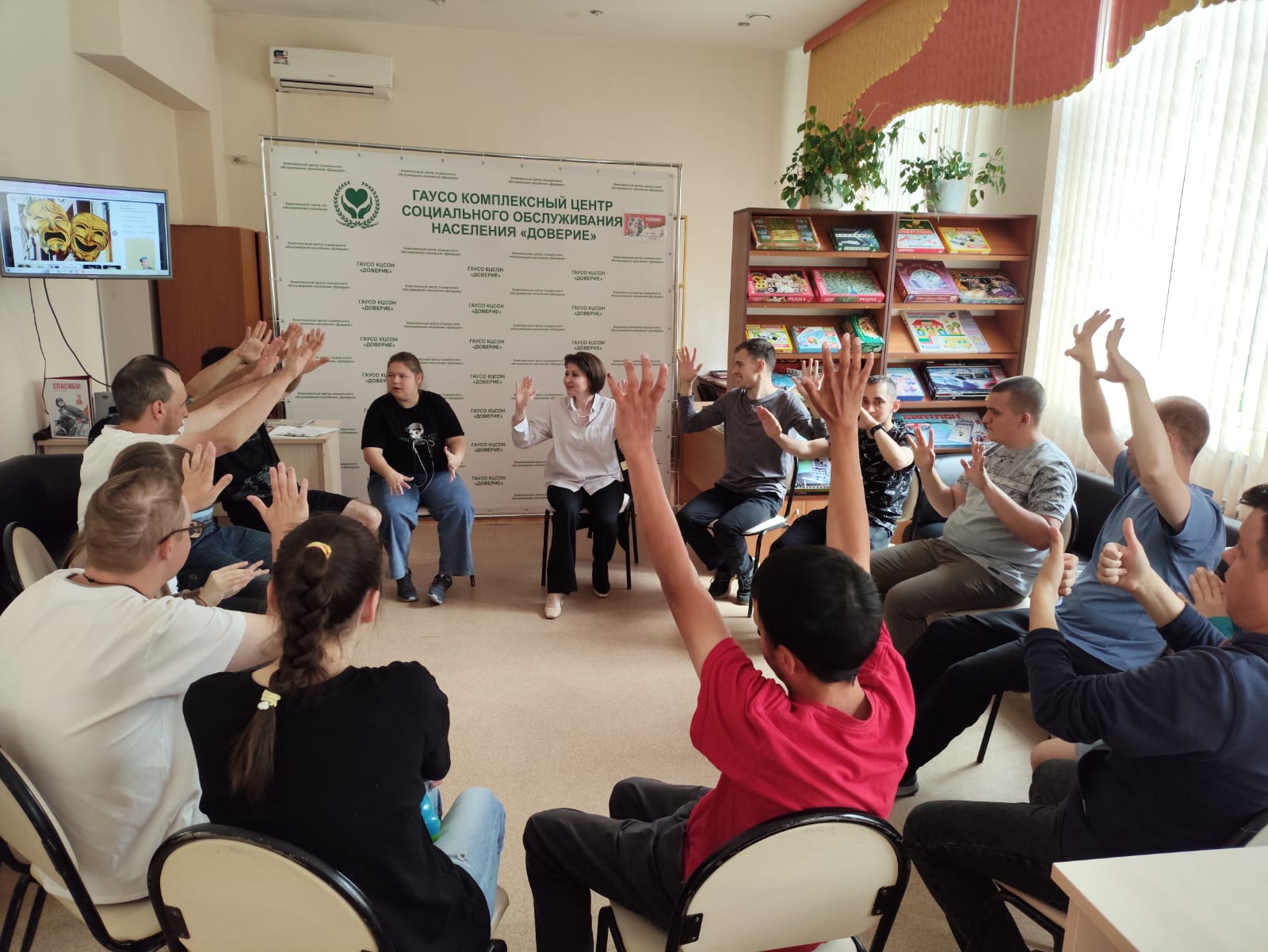 В Набережночелнинском центре социального обслуживания населения «Доверие» прошло занятие по театральному мастерству для получателей социальных услуг. Мероприятие было направлено на развитие мимики у людей с ограниченными возможностями здоровья и проходило в рамках национального проекта «Семья» и Года защитника Отечества.