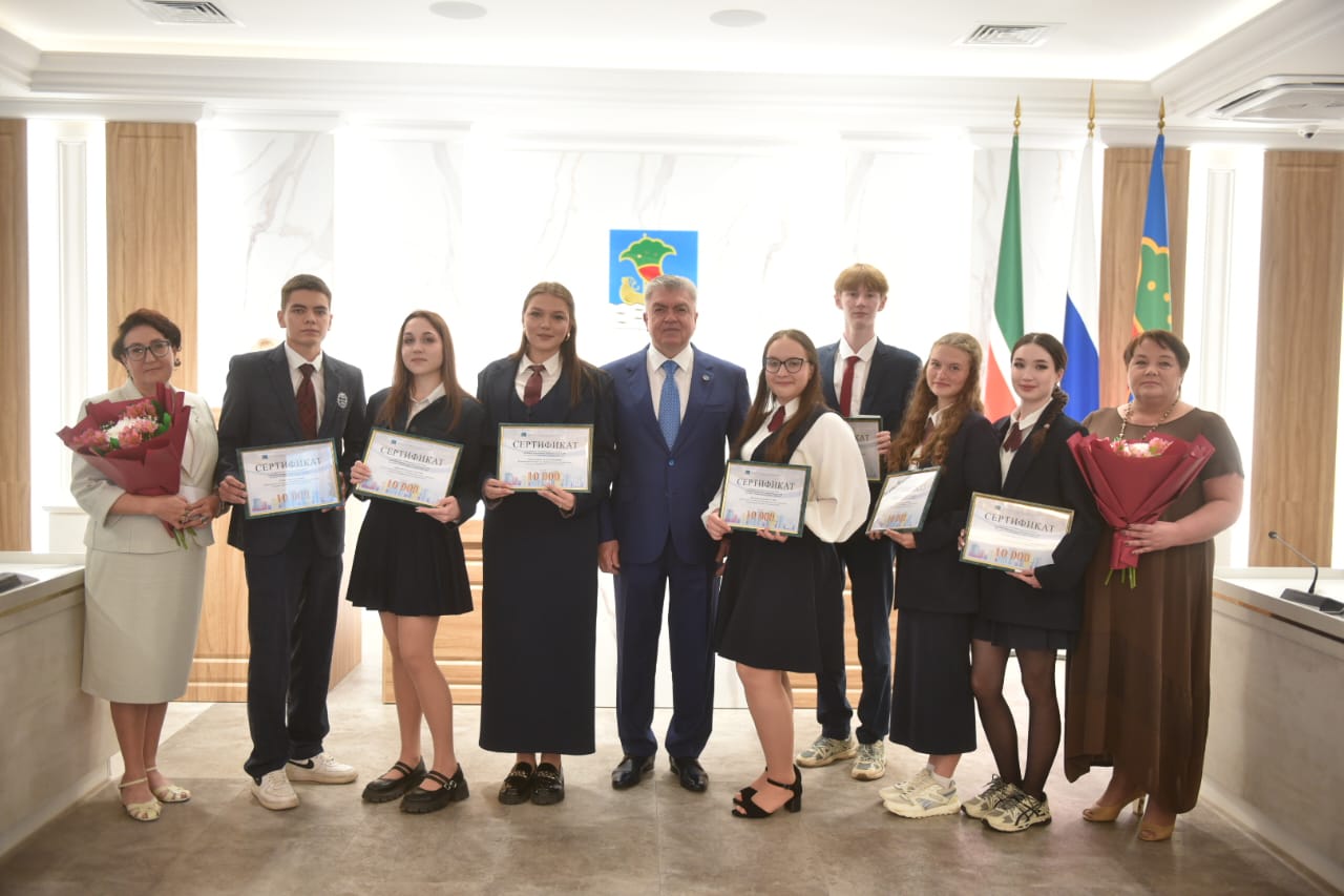 Бүген Чаллы хакиме Наил Мәһдиев Бердәм дәүләт имтиханында 100 балл җыйган 11нче сыйныф укучылары, укытучылар, мәктәп директорлары белән очрашты.