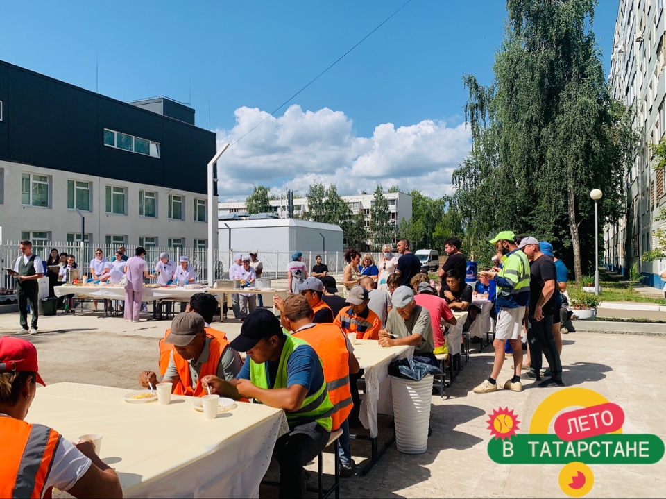 В 25-м комплексе председатель территориального общественного самоуправления Любовь Паньшина совместно с жителями выразила благодарность дорожным строителям за их нелегкий труд, угостив их вкусным пловом и ароматным домашним чаем.
