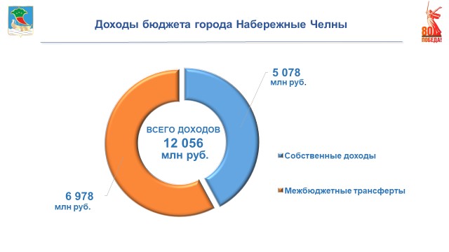 За I полугодие 2025 года бюджетом города получены доходы в сумме 12 млрд 56 млн рублей, в том числе  за счет собственных доходов – 5 млрд 78 млн рублей и межбюджетных трансфертов – 6 млрд 978 млн рублей. Плановые назначения за I полугодие по собственным доходам выполнены на 49,9%.