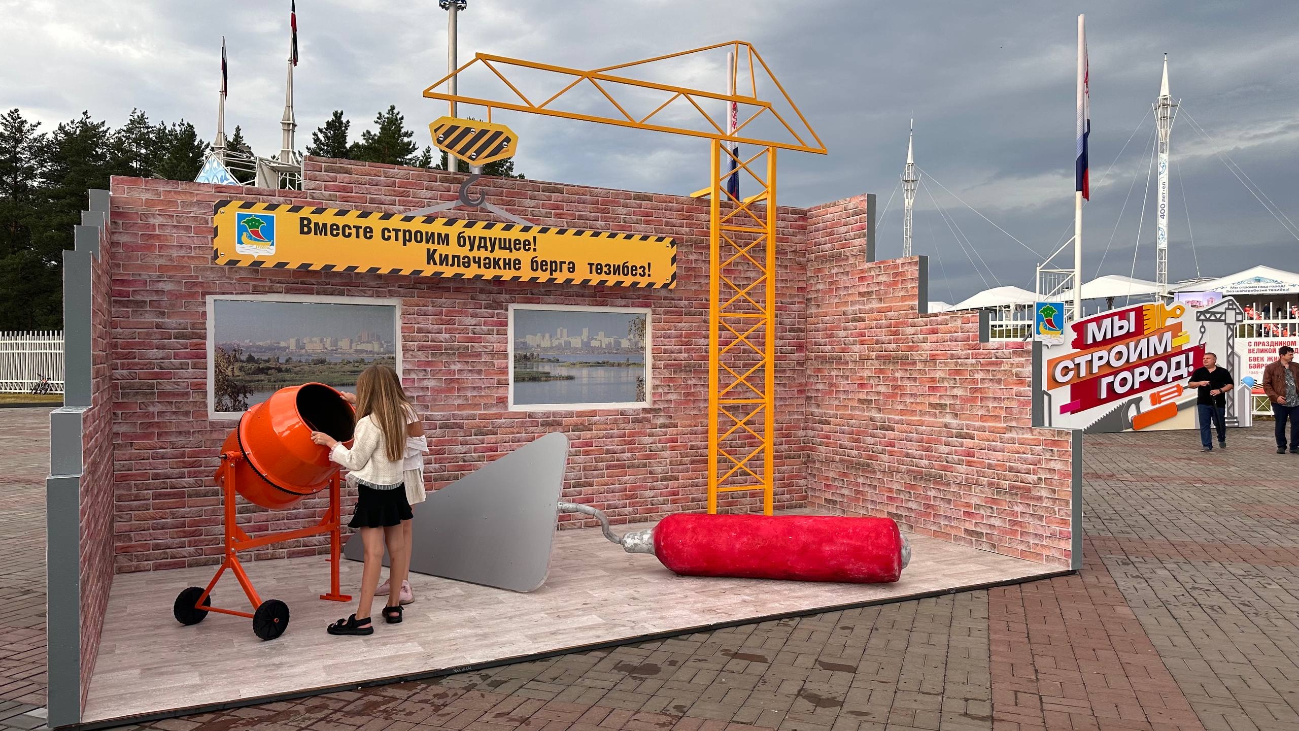 Чаллылылар төзүчеләрне һөнәри бәйрәмнәре белән котлыйлар. Майданга керү алдында шәһәрлеләр өчен Чаллы шәһәре төзелешенә багышланган фотокүргәзмә оештырылды.