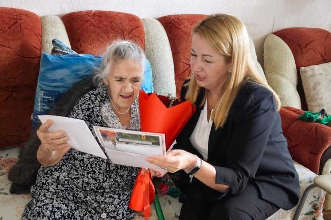 От имени Президента Российской Федерации Владимира Путина, мэра города Наиля Магдеева поздравления с 95-летним юбилеем получила ветеран Великой Отечественной войны, труженик тыла Асия Гильмутдинова Касимовна.