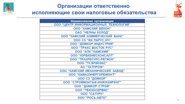 Список добросовестных предприятий-плательщиков, между тем, не менее внушительный.