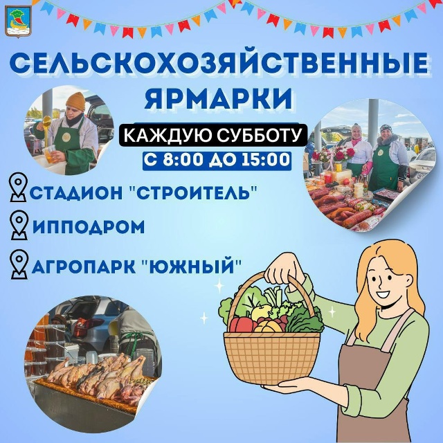 Они будут проходить до декабря, каждую субботу с 8 до 15 часов. На территории города сельскохозяйственные ярмарки проходят на трех постоянно действующих площадках: перед стадионом «Строитель»), на территории ипподрома и агропромышленного парка «Южный».