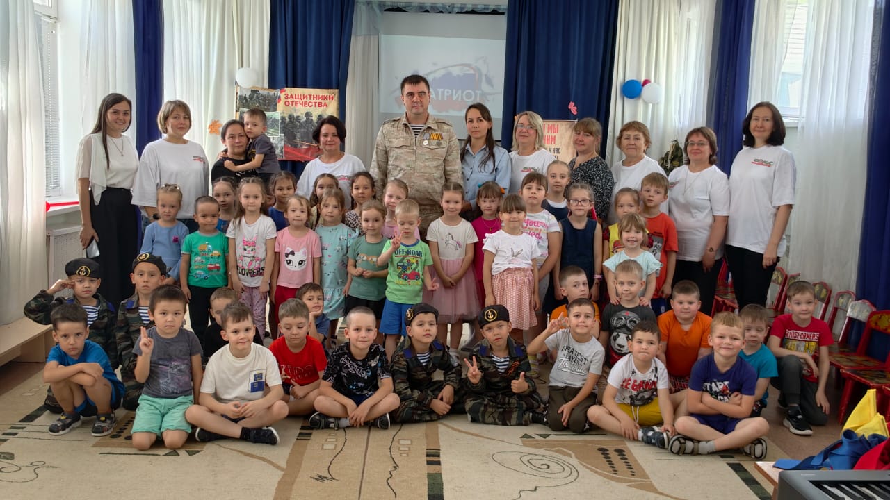 В детском саду №23 «Светлячок» прошло патриотическое мероприятие «Я патриот». Главным гостем праздника стал участник специальной военной операции, который является папой одной из воспитанниц.