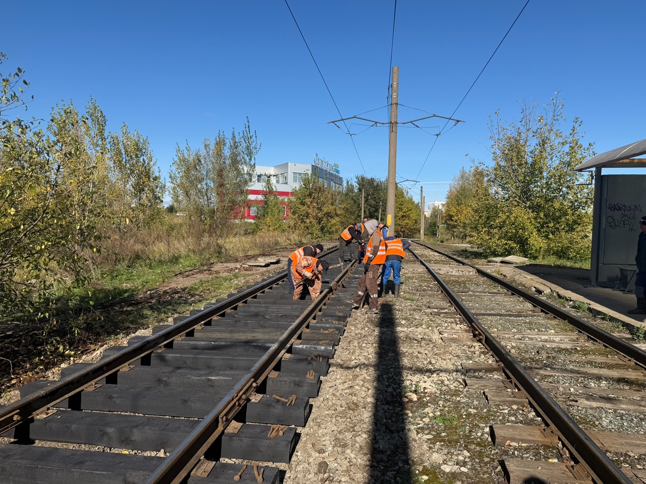 Параллельно ведутся работы по замене старых изношенных шпал на трамвайных путях. В этом году планируется обновить 10 тыс. шпал, что соответствует примерно шести (5 951 м) километрам отремонтированных путей. Сейчас ремонтные бригады работают на Машиностроительной улице.