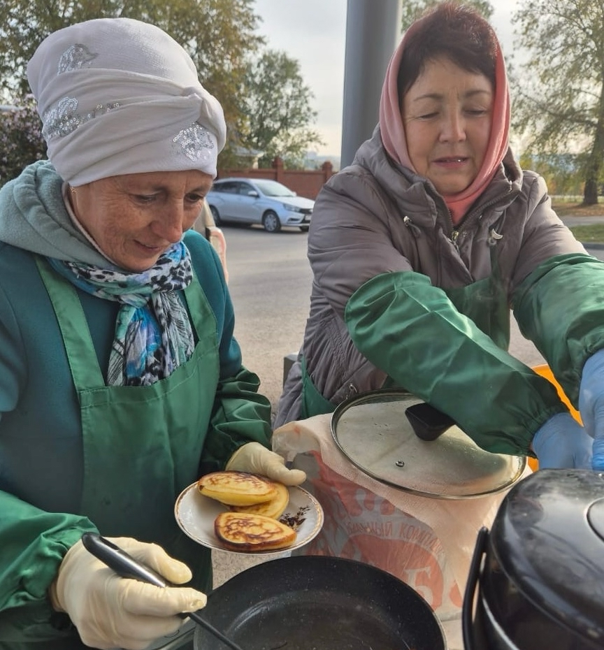 В рамках Декады старшего поколения на стадионе «Строитель» муниципальными районами были организованы чайные столы, где челнинцев и гостей города угощали чаем с блинами и медом.