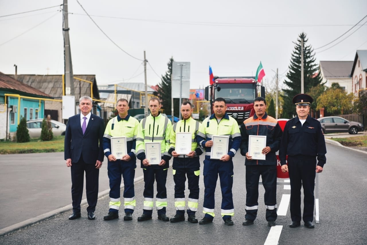 Труд дорожных рабочих, участвовавших в капитальном ремонте, было высоко оценен – Благодарность мэра города получили пять работников строительной компании: водитель укладчика Радиф Кудашов, водитель самосвала Фарух Саттинов, водитель катка Алексей Смолянинов, производители работ Айнур Намазгулов и Алексей Урусов.