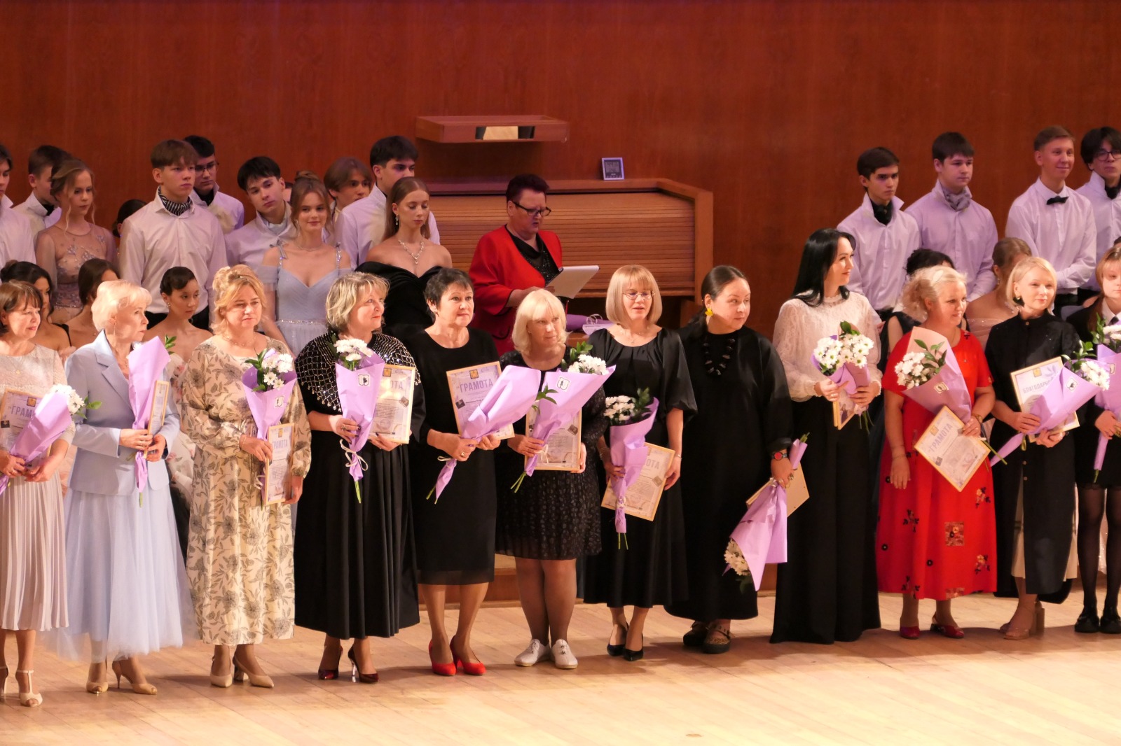 Поздравили сотрудников и педагогов лицея и вручили им заслуженные награды заместитель главы муниципального образования Ирина Сагидуллина и заместитель руководителя Исполнительного комитета Винер Харисов. Среди почётных гостей также начальник управления образования Наркиз Кашапов, депутат Городского совета Набережных Челнов, заместитель генерального директора ПАО «КАМАЗ» — финансовый директор Андрей Максимов.