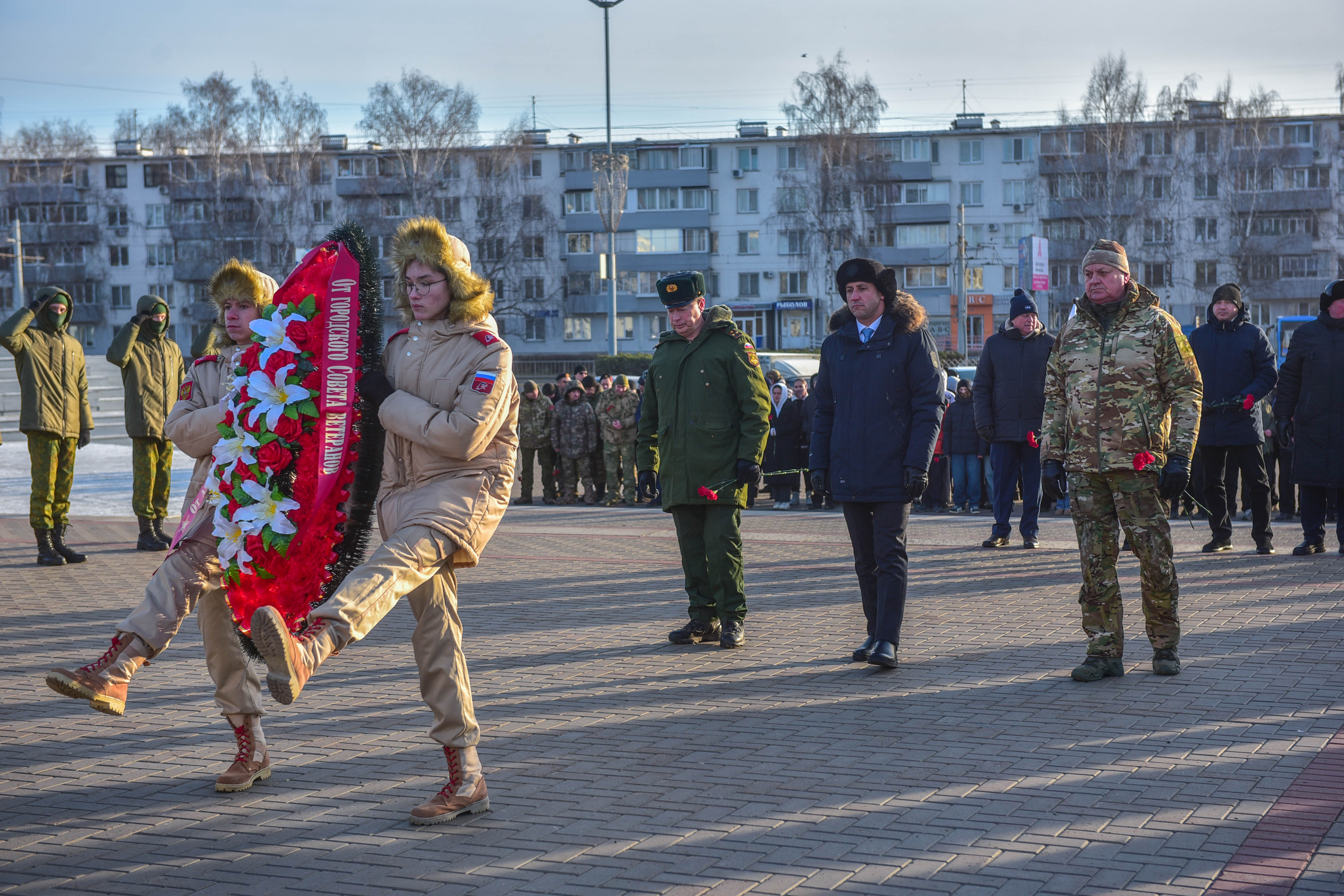 Сегодня у памятника «Родина-мать» состоялось торжественное мероприятие, посвященное Дню Героев Отечества с участием руководителя Исполнительного комитета Фарида Салахова. В акции участвовали участники СВО, главы районных администраций, начальники управлений Исполнительного комитета, депутаты Городского Совета, военнослужащие Вооруженных Сил Российской Федерации, студенты учебных заведений города, председатели ТОС, неравнодушные челнинцы.