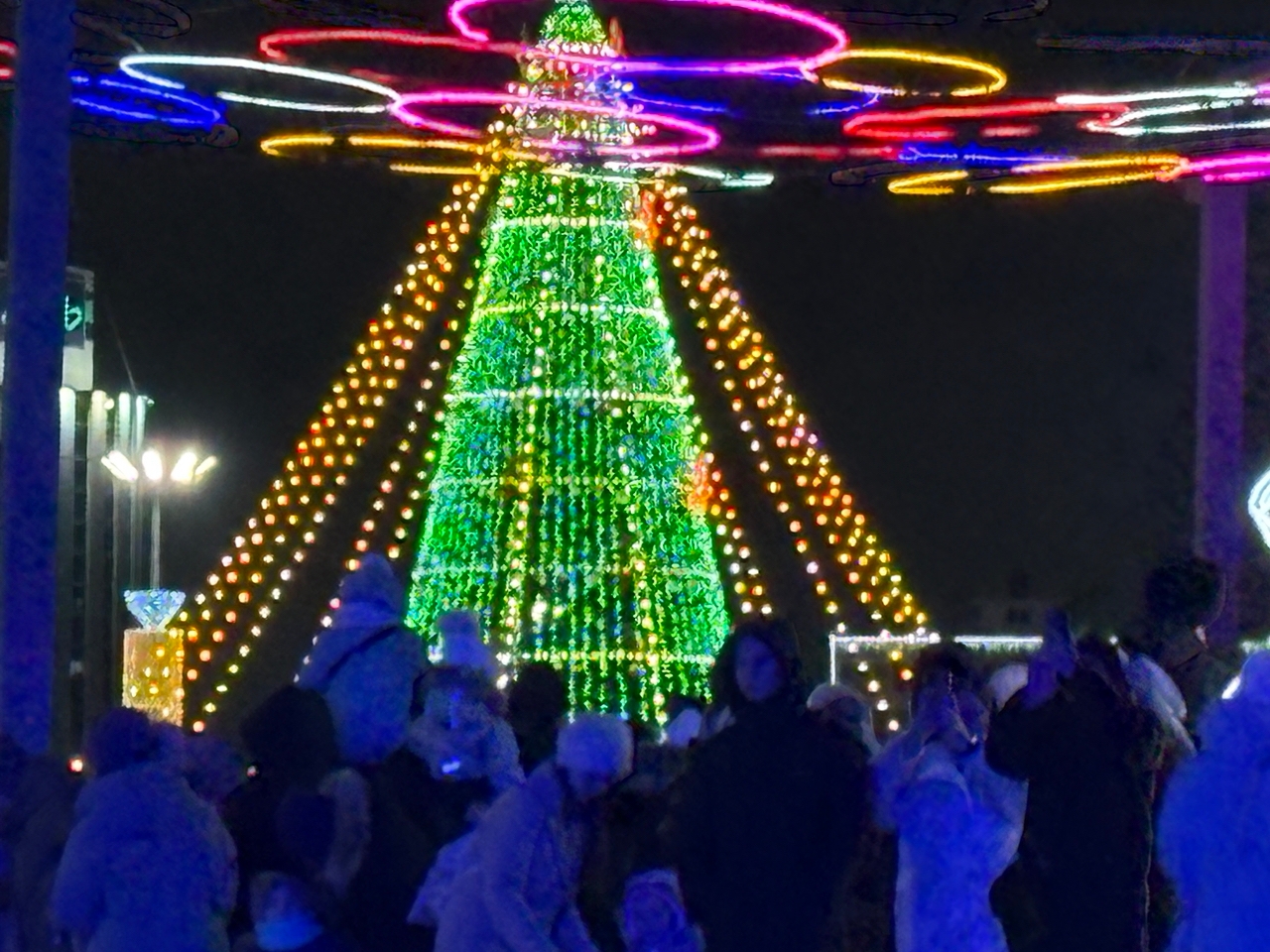 Сегодня яркими огнями засияла главная новогодняя елка Набережных Челнов. На плошади Азатлык праздничные элементы оформлены с учетом 400‑летия города и 50‑летия со дня выпуска первого КАМАЗа. К грядущему Году Красной Огненной Лошади установлен символ года и световые консоли.