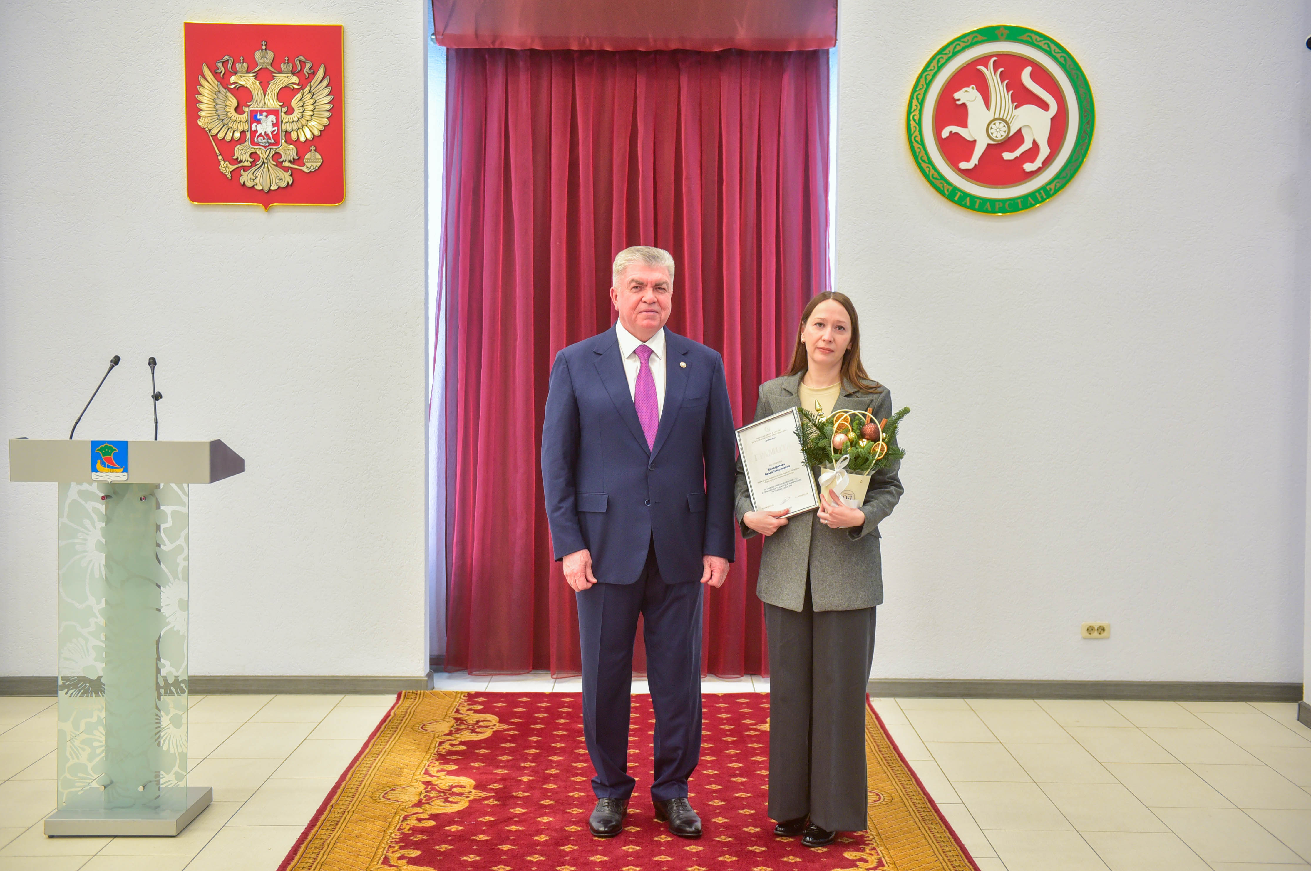 За многолетний плодотворный труд в отрасли средств массовой информации Республики Татарстан грамотой Республиканского агентства по печати и массовым коммуникациям «ТАТМЕДИА» поощрены: оператор компьютерной верстки и офис-менеджер редакции «Челнинские известия» Ольга Елистратова, заместитель главного редактора газеты «Челнинские известия» Валентина Шистерова.