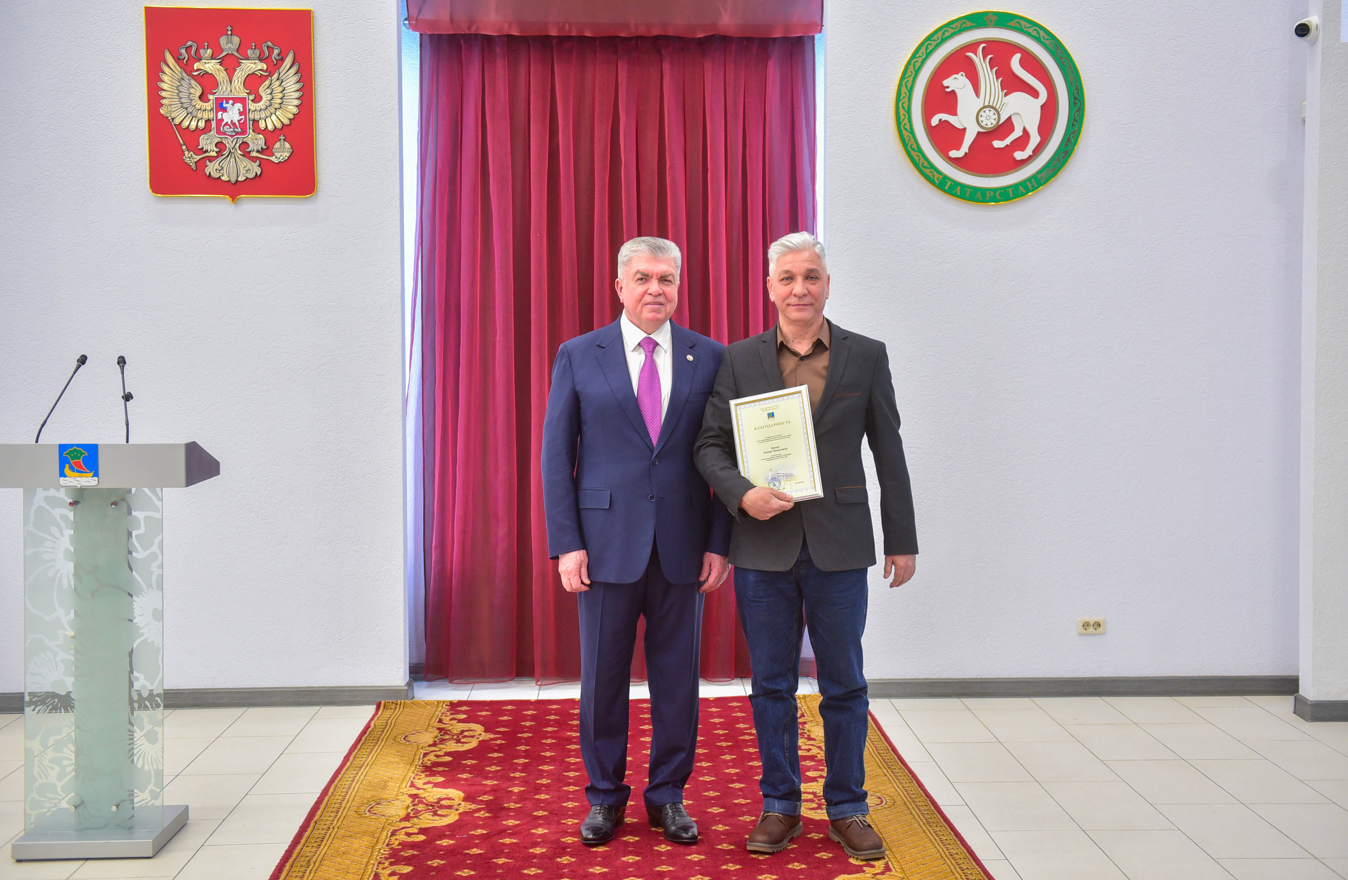 Именно профессиональный взгляд журналиста позволяет создавать такую повестку, чтобы читателям, зрителям хотелось бы созидать, чтобы город становился лучше. В этом профессионализм любого журналиста. От имени городского сообщества, городских властей благодарю вас, коллеги. Мы вместе с вами прикладываем все усилия, чтобы город развивался, жил, работал и, на мой взгляд, нам это удается», – обратился к собравшимся Наиль Магдеев.