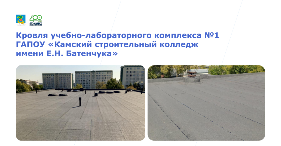 Заменена кровля здания учебно-лабораторного комплекса №1 Камского строительного колледжа имени Е. Н. Батенчука.