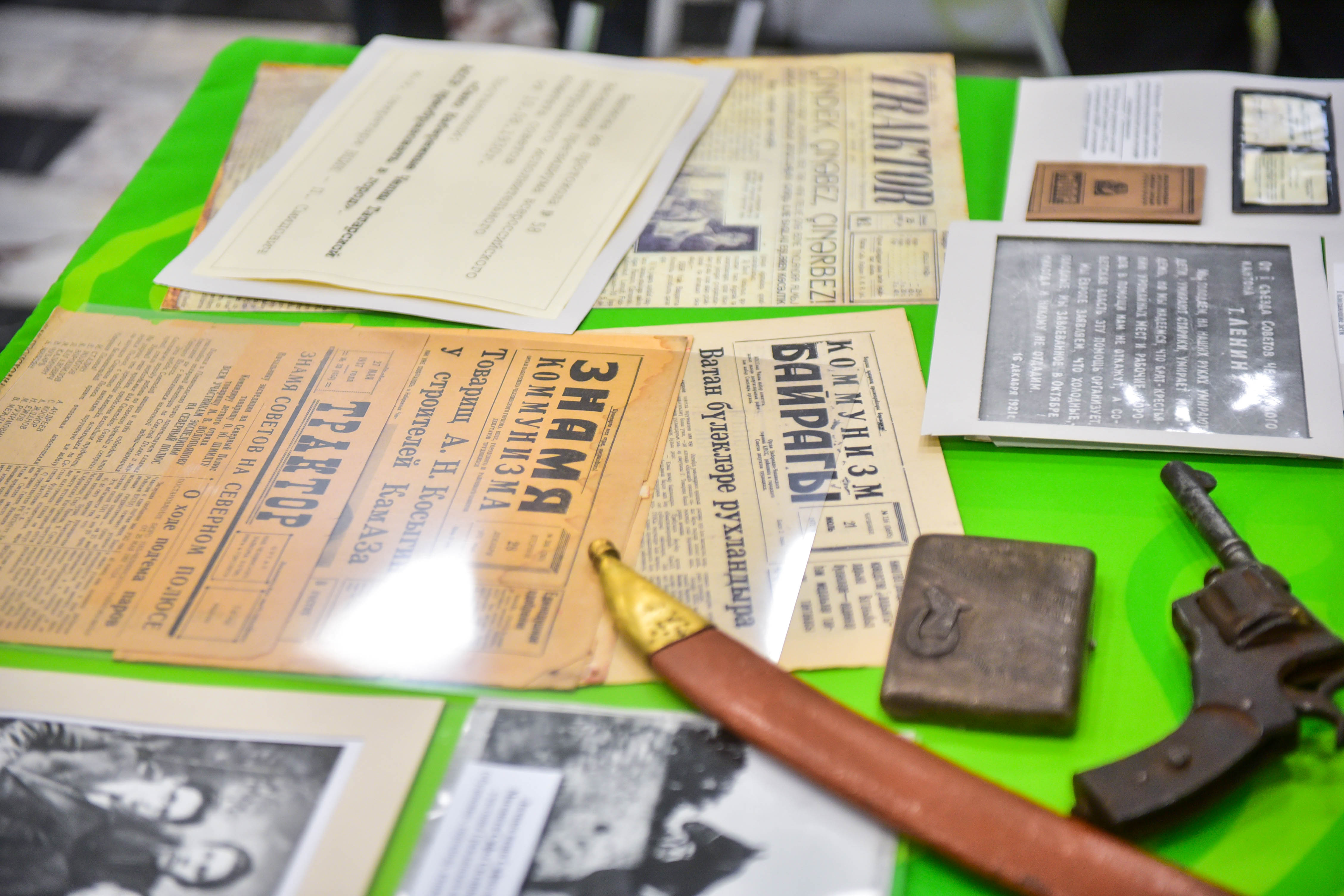 Внутри здания представили архивные фото города и КАМАЗа, предметы быта прошлых лет, оружие и снаряжение бойцов времен революции и Великой Отечественной войны.