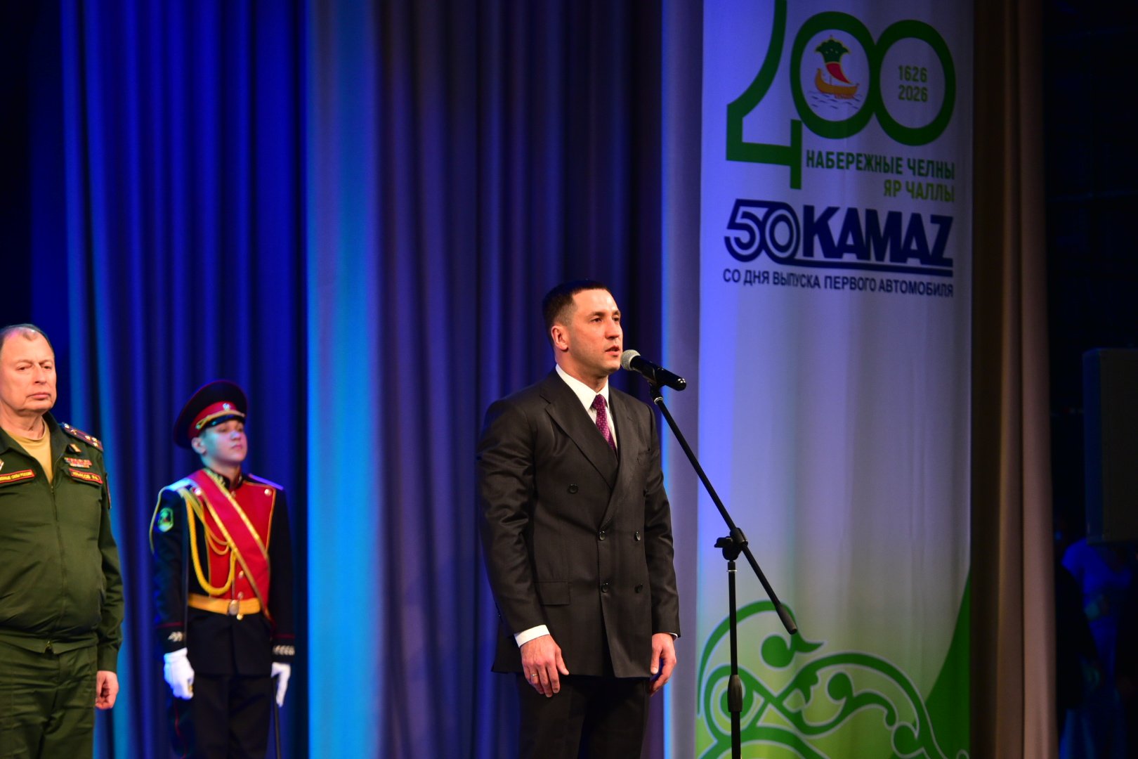 С приветственным словом к собравшимся обратился руководитель Исполнительного комитета Фарид Салахов. Он поздравил горожан с праздником, отметив мужество и доблесть защитников Родины: «Не единожды враг, нападавший на нашу землю, был остановлен и отражен. Все эти жертвы и труды были ради одного: чтобы мы жили на свободной земле, говорили на своих языках и хранили заветы предков. Мы склоняем головы перед ветеранами Афганистана и Чечни — их мужество стало для нас примером верности присяге и Родине.