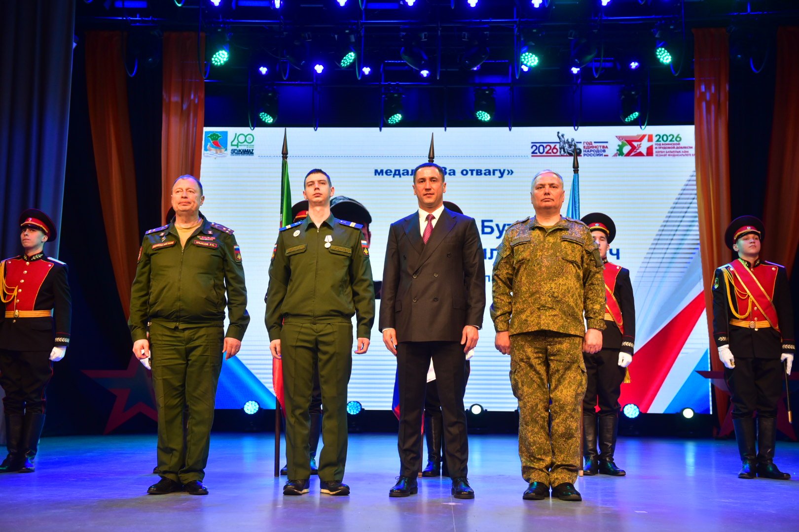 Кульминацией официальной части стало вручение заслуженных наград. Указом Президента Российской Федерации Владимира Путина за мужество, отвагу и самоотверженность, проявленные при исполнении воинского и служебного долга орденом Мужества награжден рядовой Евгений Алчанов, медалями «За отвагу» – младший сержант Данил Бутырин и рядовой Владимир Яковлев.