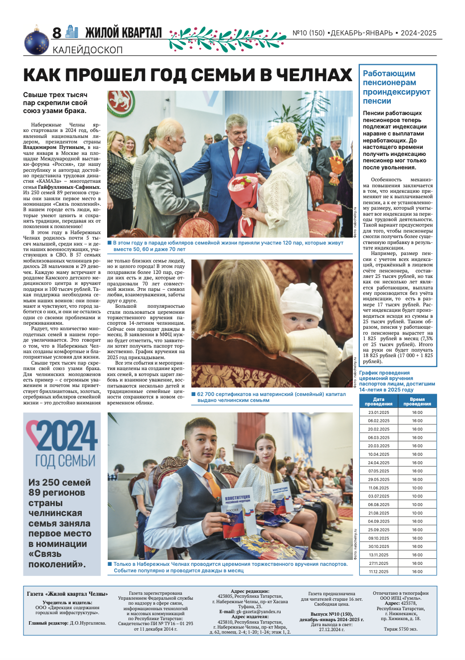 Мәгълүмат сәясәт һәм җәмәгатьчелек белән элемтә идарәсе «Жилой квартал» газетасының соңгы чыгарылышын тәкъдим итә. Анда узган елга нәтиҗәләр ясалды.