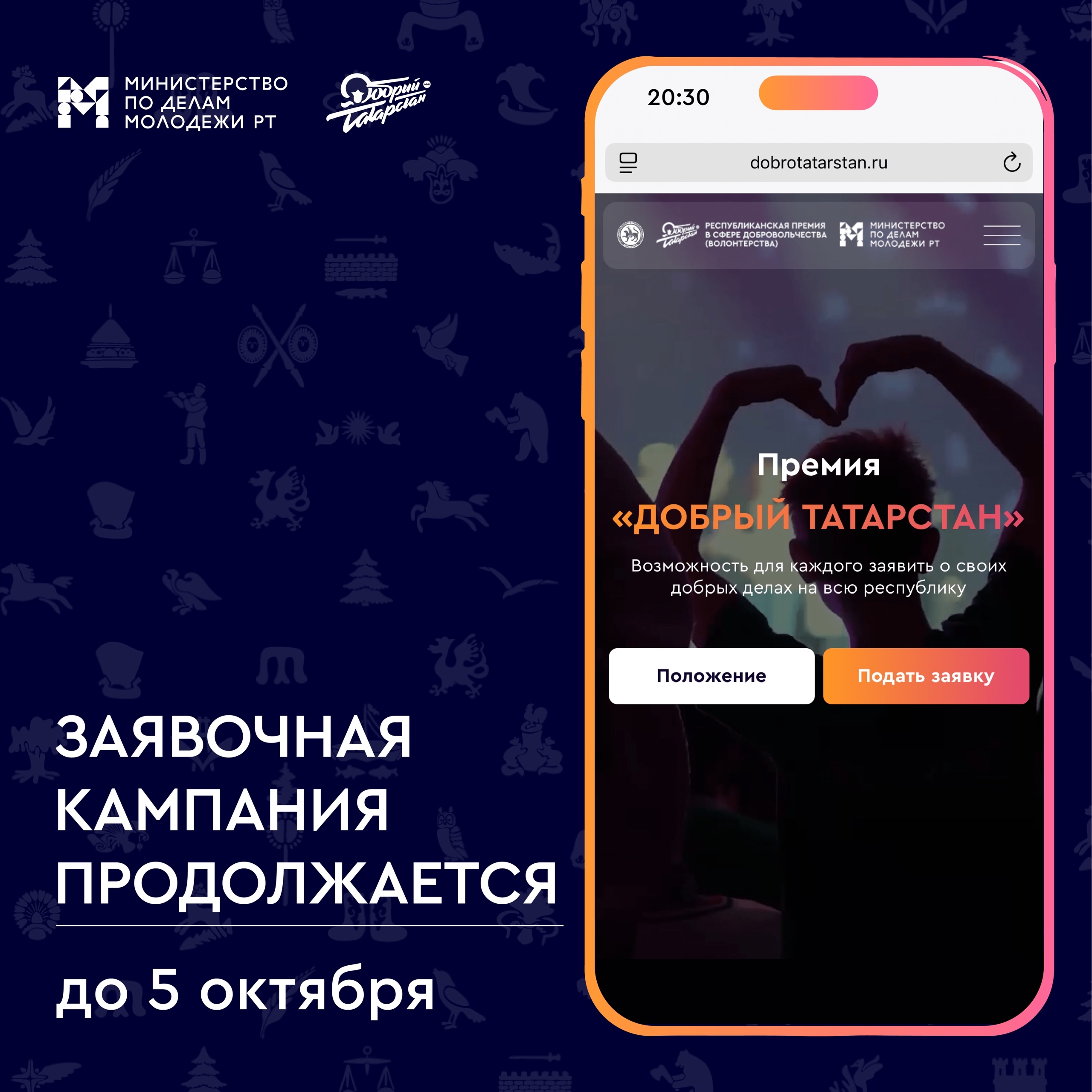 Иреклеләр өлкәсендә «Мәрхәмәтле Татарстан» Республика премиясенең гаризалар бирү кампаниясе 5 октябрьгә кадәр дәвам итә.