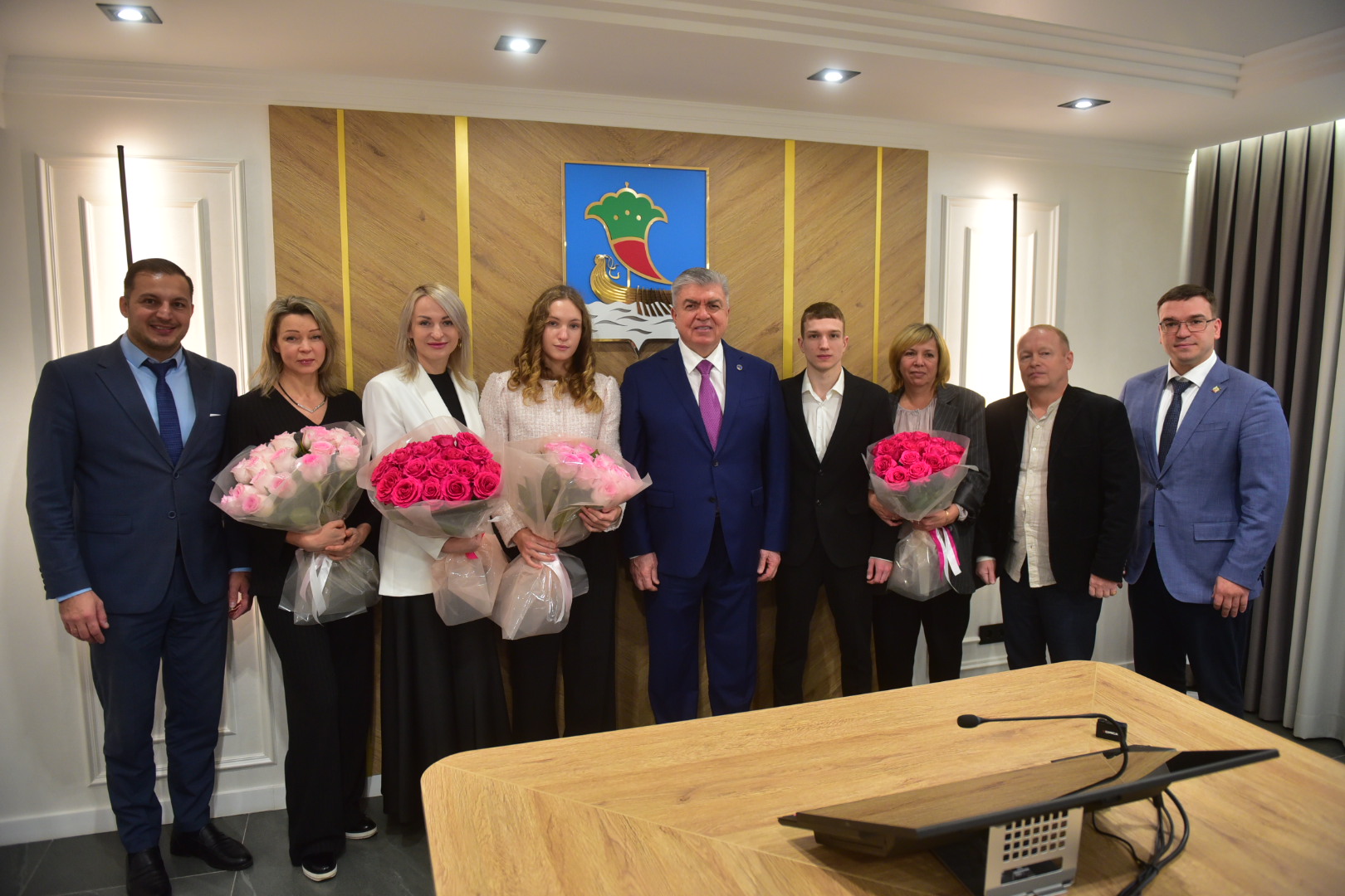 Бүген Наил Мәһдиев чаллы спортчылары Кирилл Козлов һәм Ралина Гыйләҗева белән очрашты.