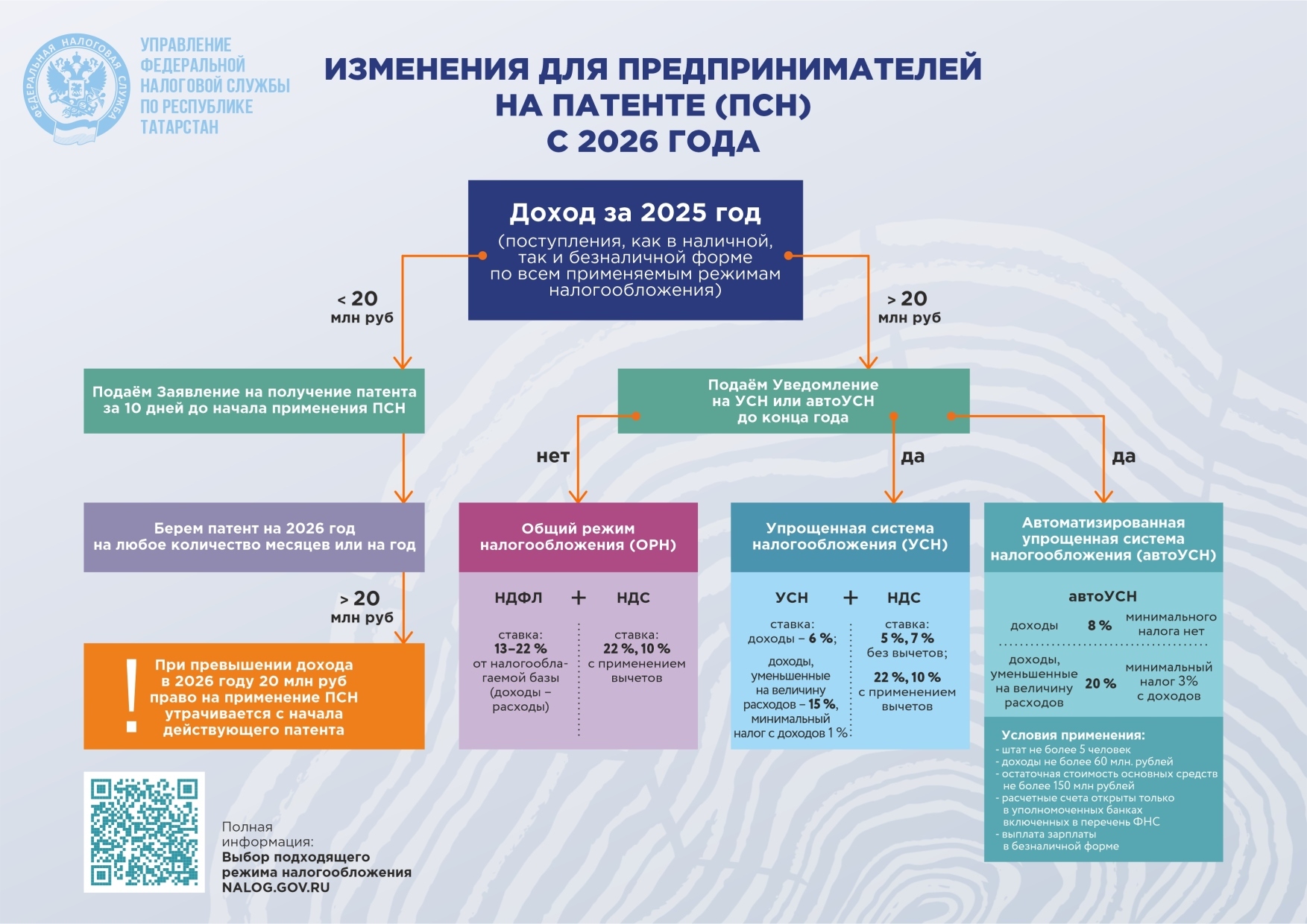 Салым салуның патент системасы (ПСН), ваклап сату һәм йөк ташу өлкәләрен дә кертеп, сакланып калган, ләкин аны 2026 елдан куллану шартлары үзгәртелгән. Аңа бары тик салым салуның барлык кулланыла торган режимнары буенча гомуми кереме акчалы һәм акчасыз булган шәхси эшмәкәрләр генә күчә алачак — 2025 елда 20 млн сумнан артмаячак.